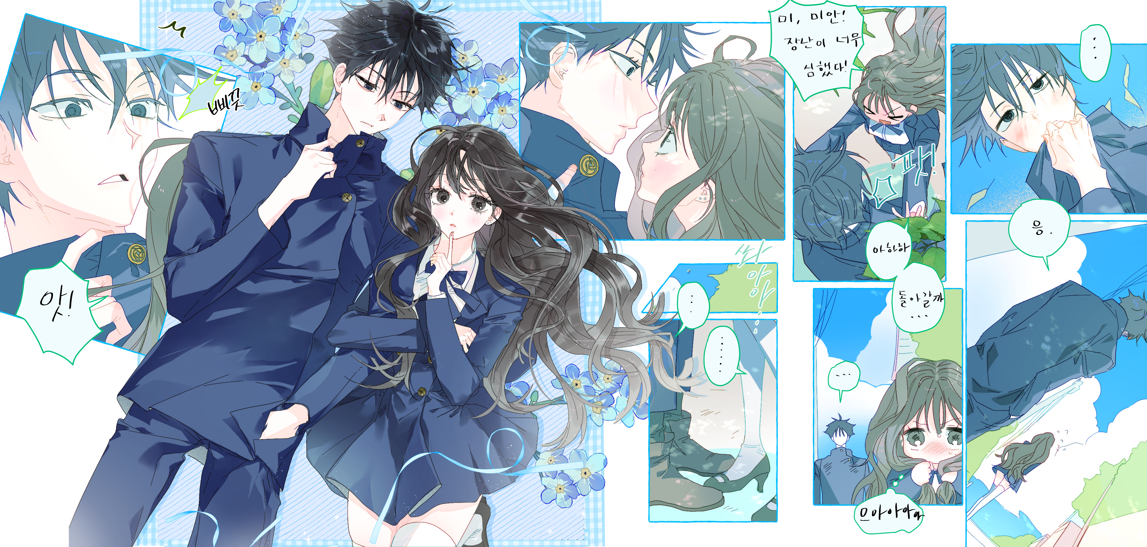 좋아하는 커미션 중에 세 손가락 안에 꼽는 작업물! 컷 추가를 두세 개 정도 했는데 웹툰이 되어 와서 깜짝 놀랐다 스토리랑 대사도 지정 없이 작업자분께서 정해 주신 거라 새롭고 좋았어 ~.~